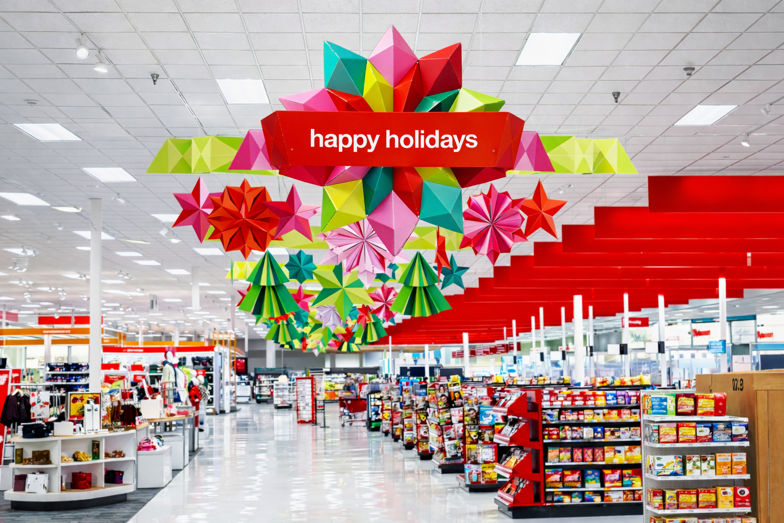 A bold, inclusive holiday visual system that transforms a rich product assortment into a faceted, energetic world, balancing graphic structure with warm, human photography to create a joyful and welcoming experience.